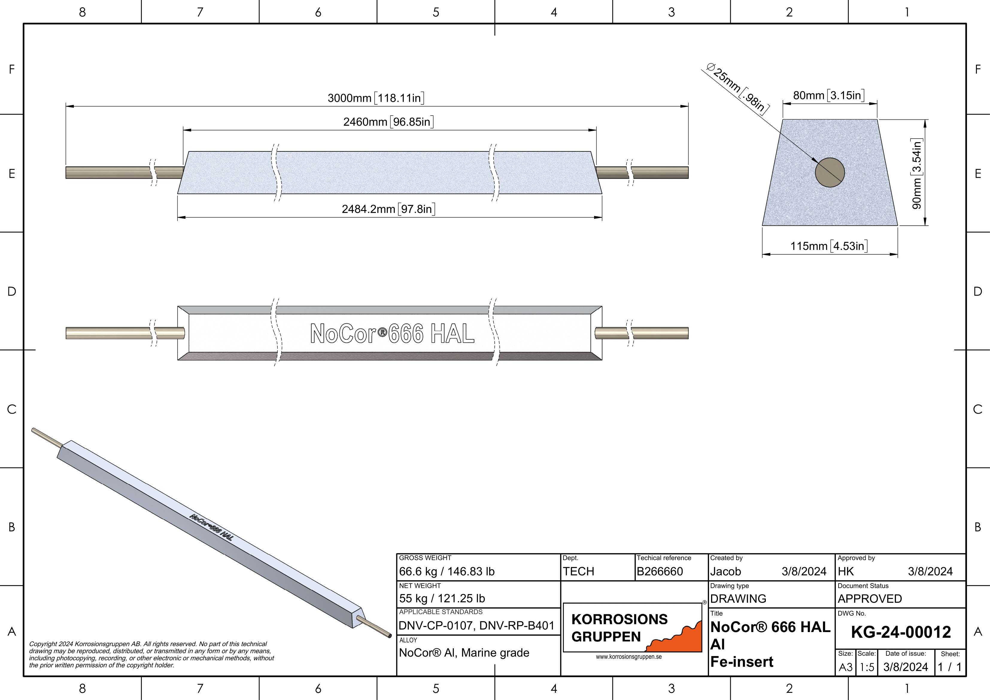 Anoda aluminiowa TYP 666HAL, 55kg netto